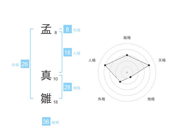 孟 真雛さんの天格は8画の4点!