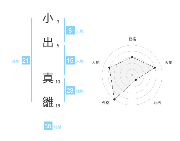 小出 真雛さんの天格は8画の4点!