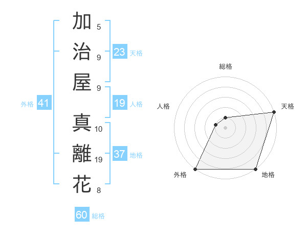 加治屋 真離花さんを姓名の画数から五運を鑑定