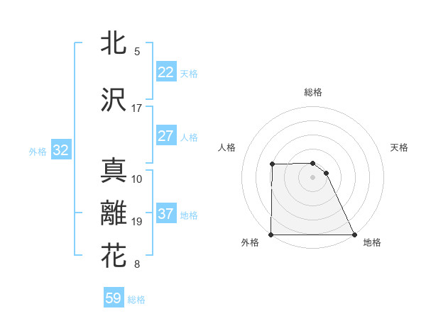 北沢 真離花さんを姓名の画数から五運を鑑定