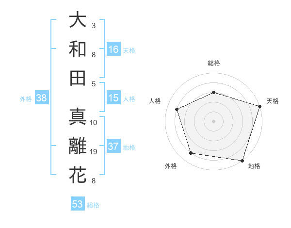 大和田 真離花さんを姓名の画数から五運を鑑定
