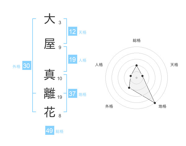 大屋 真離花さんを姓名の画数から五運を鑑定