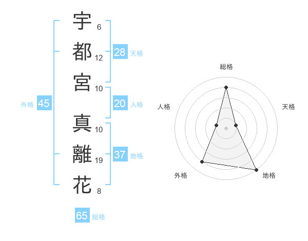 宇都宮 真離花さんを姓名の画数から五運を鑑定