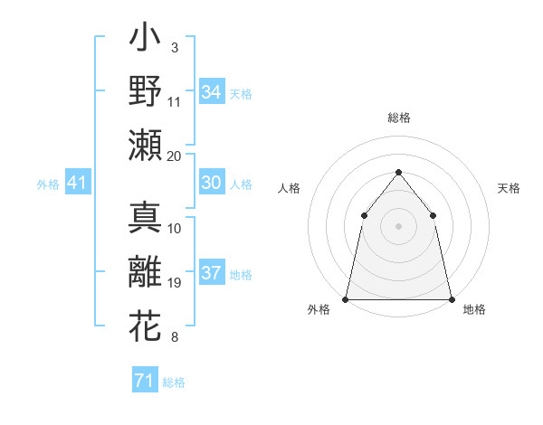 小野瀬 真離花さんを姓名の画数から五運を鑑定