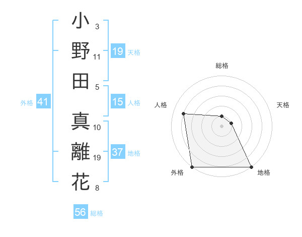 小野田 真離花さんを姓名の画数から五運を鑑定