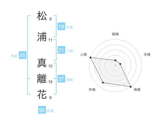 松浦 真離花さんを姓名の画数から五運を鑑定