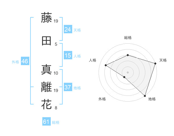 藤田 真離花さんの天格は24画の5点!