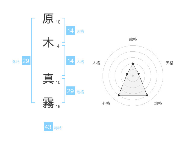 原木 真霧さんの外格は29画の4点!