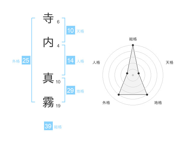 寺内 真霧さんの総格は39画の5点!