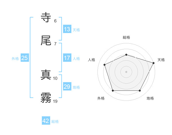 寺尾 真霧さんを姓名の画数から五運を鑑定