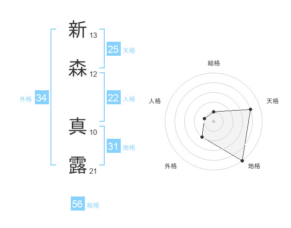 新森 真露さんの外格は34画の2点!