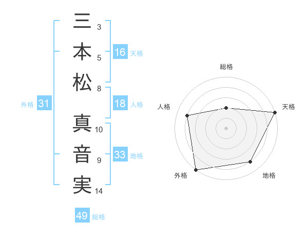 三本松 真音実さんを姓名の画数から五運を鑑定