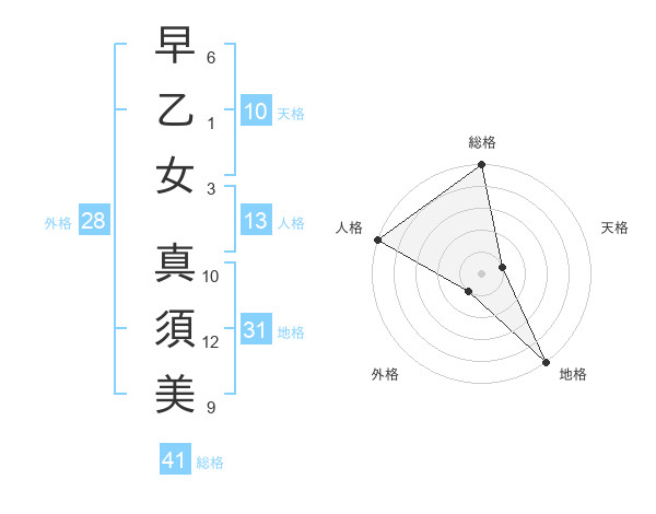 早乙女 真須美さんの天格は10画の1点!