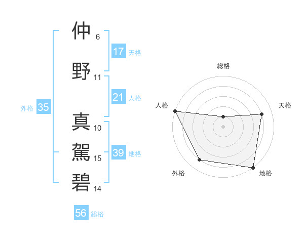 仲野 真駕碧さんの天格は17画の4点!