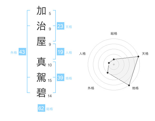 加治屋 真駕碧さんを姓名の画数から五運を鑑定