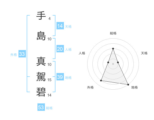 手島 真駕碧さんの総格は53画の3点!