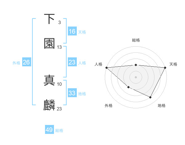 下園 真麟さんの総格は49画の2点!