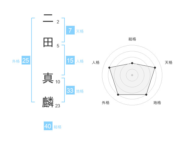 二田 真麟さんの外格は25画の4点!