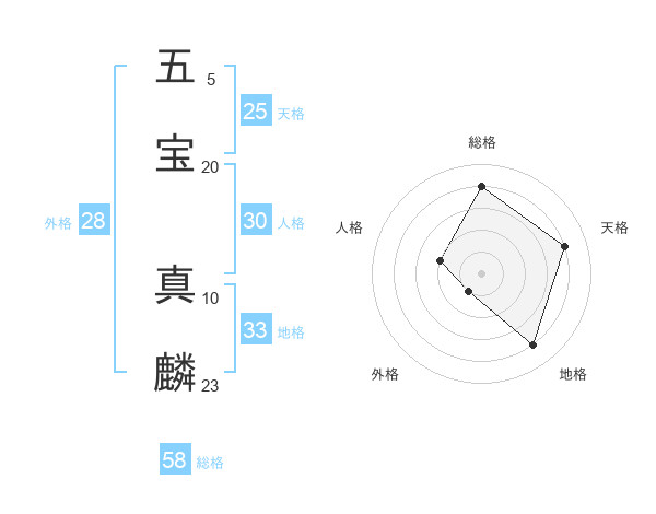 五宝 真麟さんの総格は58画の4点!