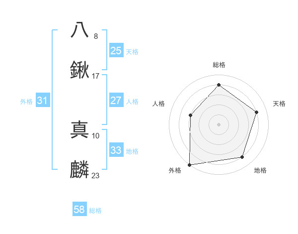 八鍬 真麟さんの総格は58画の4点!