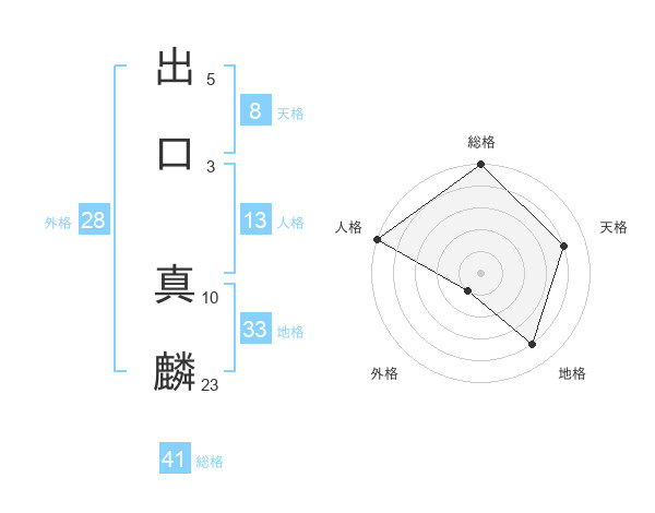 出口 真麟さんの総格は41画の5点!