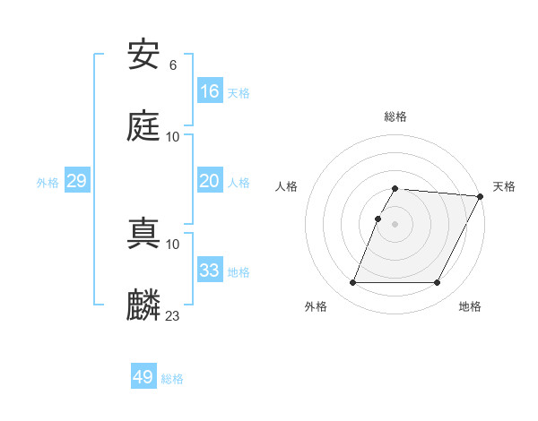 安庭 真麟さんを姓名の画数から五運を鑑定