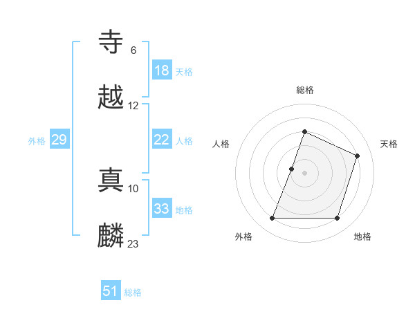 寺越 真麟さんを姓名の画数から五運を鑑定