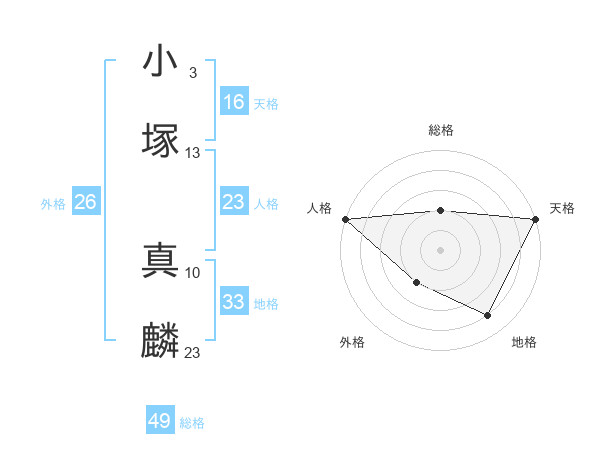 小塚 真麟さんの総格は49画の2点!