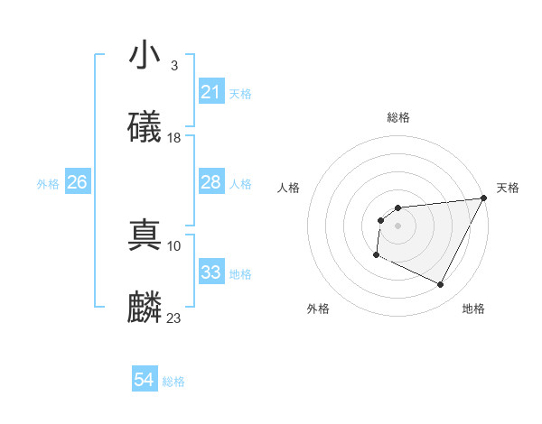 小礒 真麟さんの天格は21画の5点!