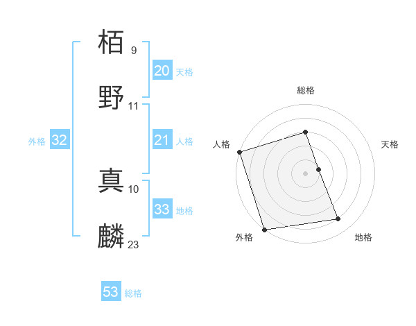 栢野 真麟さんの総格は53画の3点!