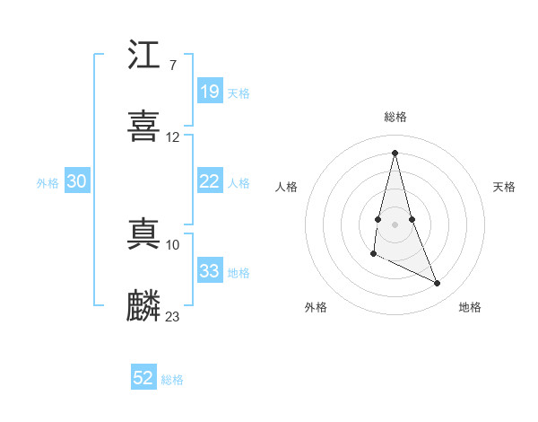 江喜 真麟さんを姓名の画数から五運を鑑定