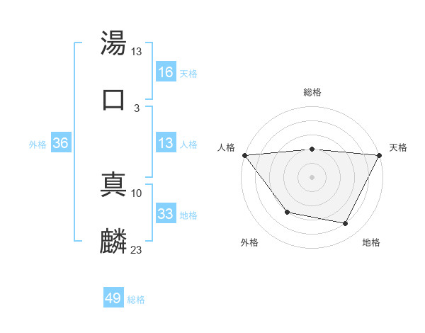 湯口 真麟さんの総格は49画の2点!