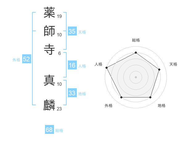 薬師寺 真麟さんを姓名の画数から五運を鑑定