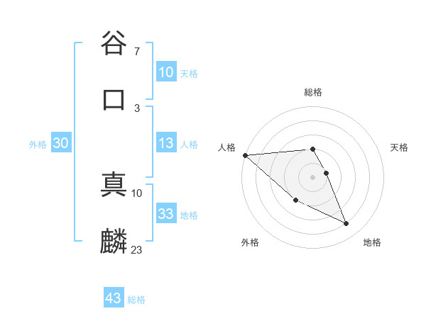 谷口 真麟さんを姓名の画数から五運を鑑定