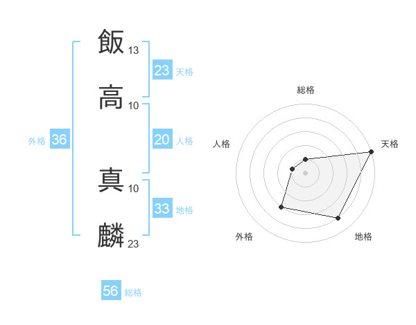飯高 真麟さんの総格は56画の1点!