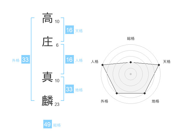 高庄 真麟さんを姓名の画数から五運を鑑定