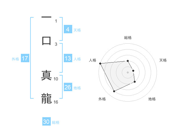 一口 真龍さんの総格は30画の2点!