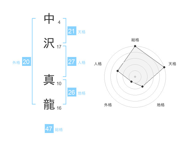中沢 真龍さんの総格は47画の5点!