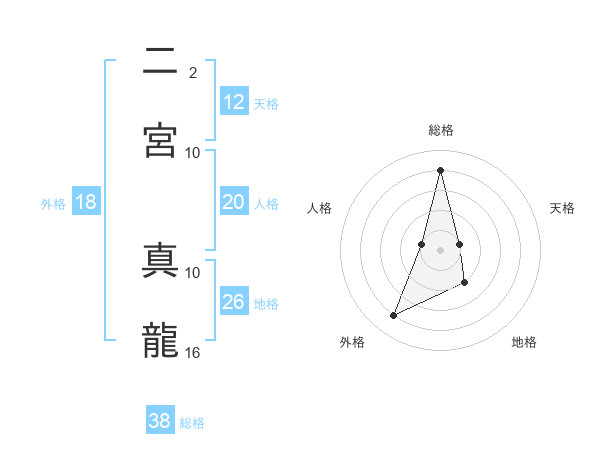 二宮 真龍さんの総格は38画の4点!