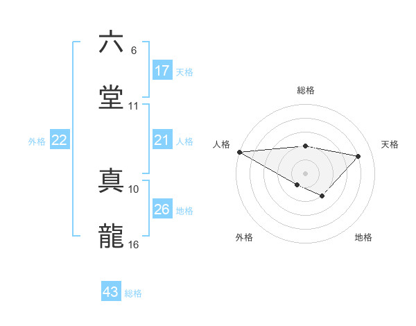 六堂 真龍さんの天格は17画の4点!