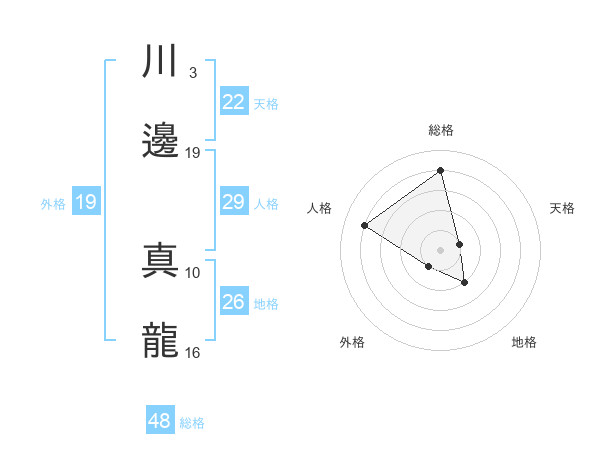 川邊 真龍さんの総格は48画の4点!