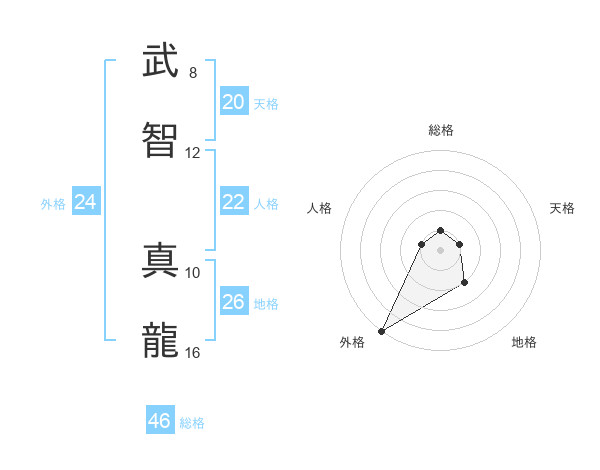 武智 真龍さんの総格は46画の1点!