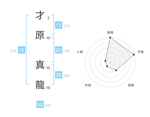 才原 真龍さんの総格は39画の5点!