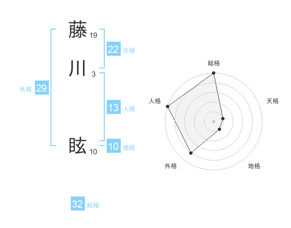 藤川 眩さんの総格は32画の5点!
