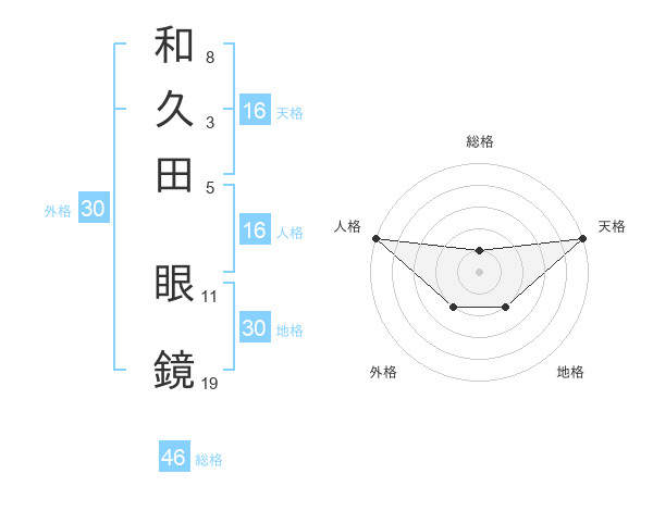 和久田 眼鏡さんを姓名の画数から五運を鑑定