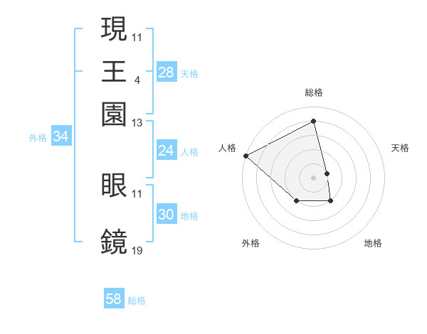 現王園 眼鏡さんの総格は58画の4点!