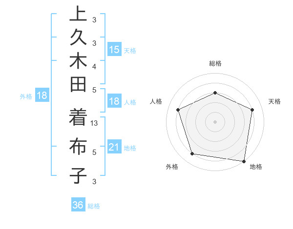 上久木田 着布子さんを姓名の画数から五運を鑑定