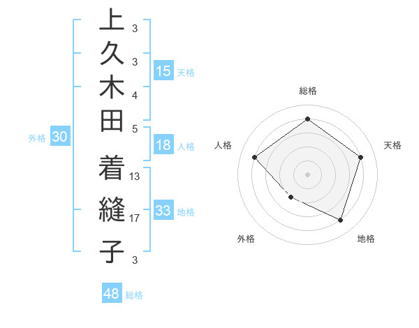上久木田 着縫子さんを姓名の画数から五運を鑑定