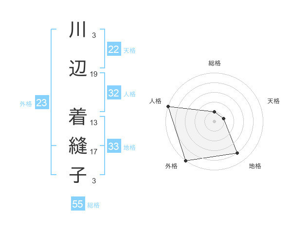川辺 着縫子さんを姓名の画数から五運を鑑定