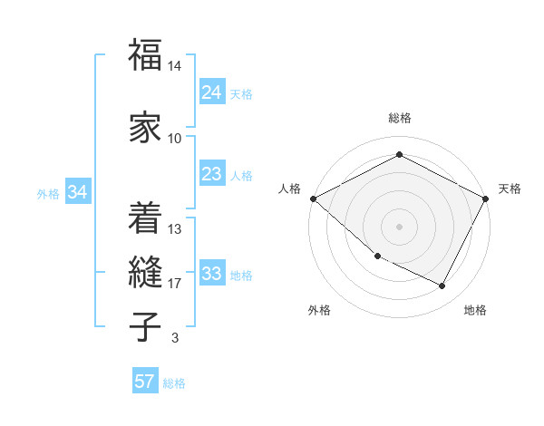 福家 着縫子さんを姓名の画数から五運を鑑定